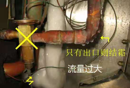 如果膨脹閥體只有出口側(cè)結(jié)霜,表明流量過大。